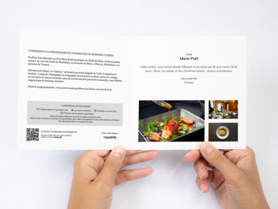 Découvrez le Menu "Le Château" orchestré par notre brigade de Chefs d'expériences étoilées : Coupe de Champagne accompagnée de ses pièces cocktail, menu en 5 temps, accord mets et vins ou boissons sans alcool sélectionné par notre sommelier, eaux filtrées, mignardises et boissons chaudes.